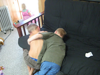 While we played games the kids were just running around crazy! Which they normally do when they are together. Seriously, they have too much energy!! Xander & Max wrestling: