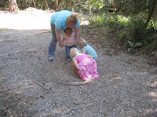 Karri was so nice to take the girls outside. Here they are probably looking at bugs.