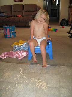 Apparently she wasn't done eating. I'm just lucky that she doesn't like milk on her cereal. So she was really helpful in one situation, but a totally hindrance in the other.