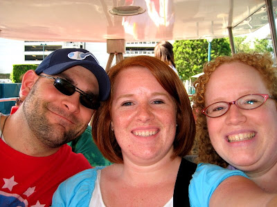 We were going to stay for a few more panels (like New Moon and Robot Chicken) but decided to leave earlier than planned so we could get on the road to Disneyland! It was Karri's Birthday and she got in free!!!!!On the parking tram.