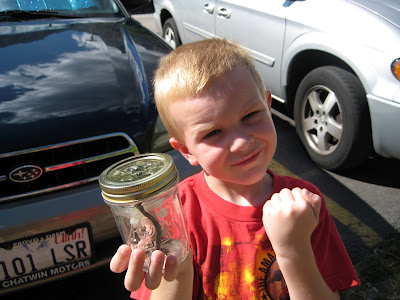 On Wednesday when we were at my Grandma's house, Pat found a small snake in her backyard, caught it, and put it in a jar. Xander was loving having it but we decided to go up to Bridal Veil Falls and let it go that night.