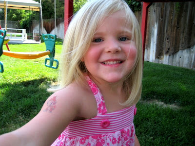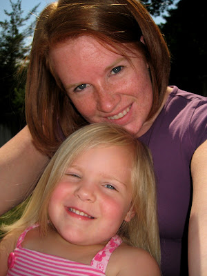 Last Friday, Mara and I enjoyed some time outside in the backyard. I really hate to be in the sun during the summer because I burn so easily, so I try to wait until later in the day when there is more shade on the swing set to go out with the kids. We have a glider swing that the kids love and Mara always makes me swing on it with her. I took a bunch of pictures of us while swinging and here are the 2 that look the best :)