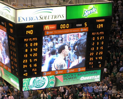 Then we headed up to Salt Lake to go to the Jazz game. A co-worker of Pat's gave us their tickets for that night because they weren't able to go. So we had free tickets to THE BEST game of the year! They played against the Oklahoma City Thunder, a team that they have lost to all season! It was a very intense game but after a high scoring game and overtime The Jazz were Victorious!!!! It was awesome! Let's just hope that they do well in the playoffs!