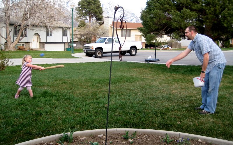 On the 15th, we spent time outside in the nice weather. Xander and Pat played baseball for a bit, then Mara wanted to play too. I think this was her first time trying to play and it was so cute!
