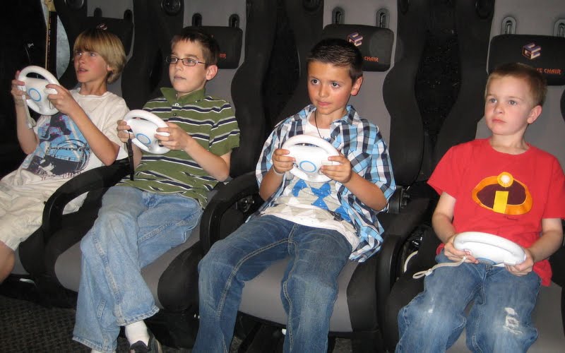 It has 4 screens and 16 chairs and a ton of different games to play!