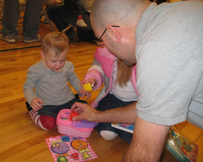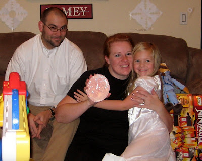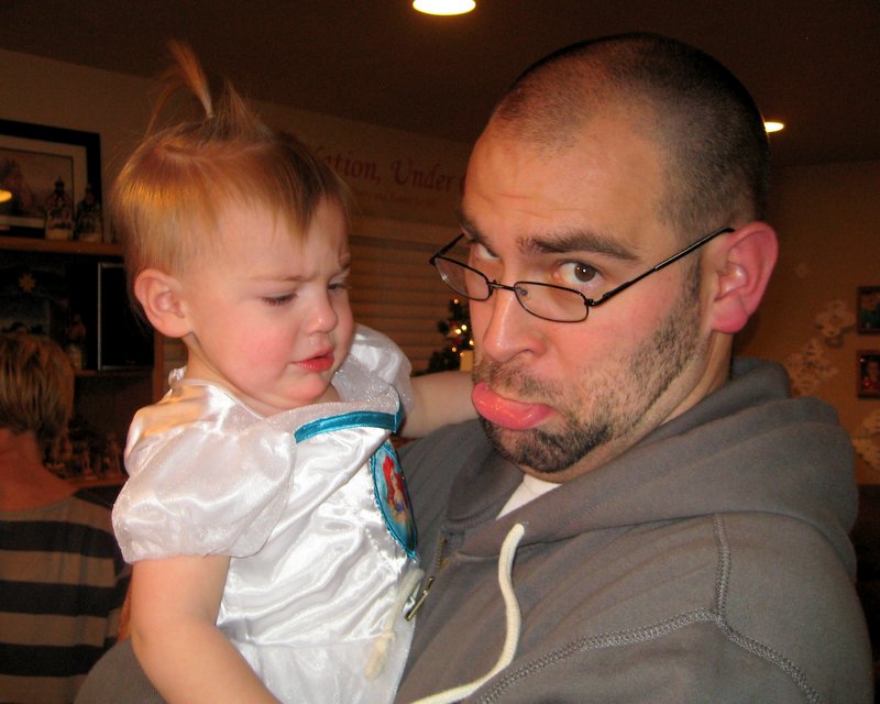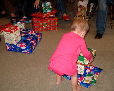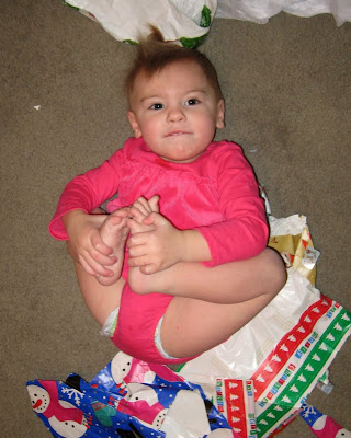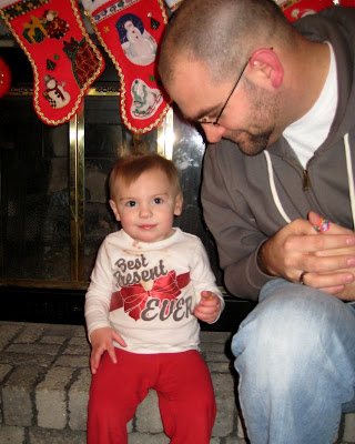 The only way I could get a picture of her with the stockings was to have Daddy sit with her.