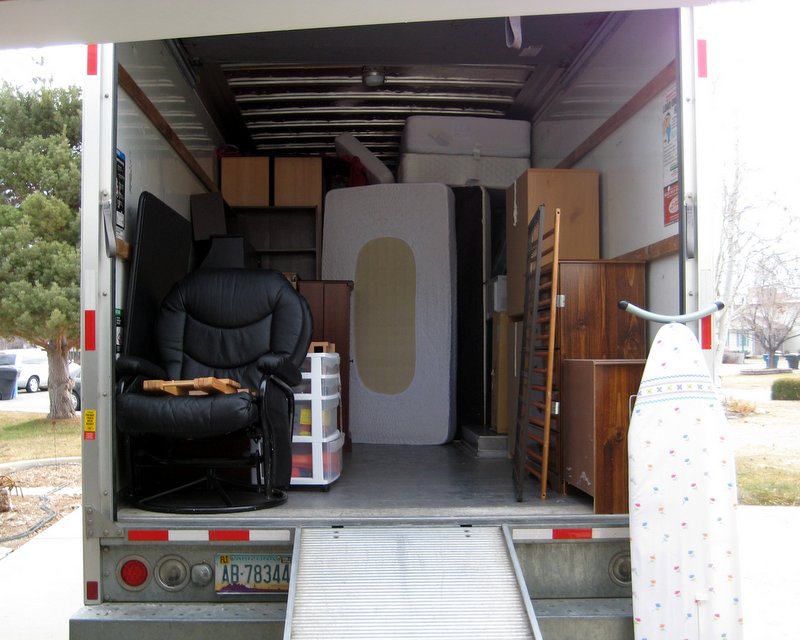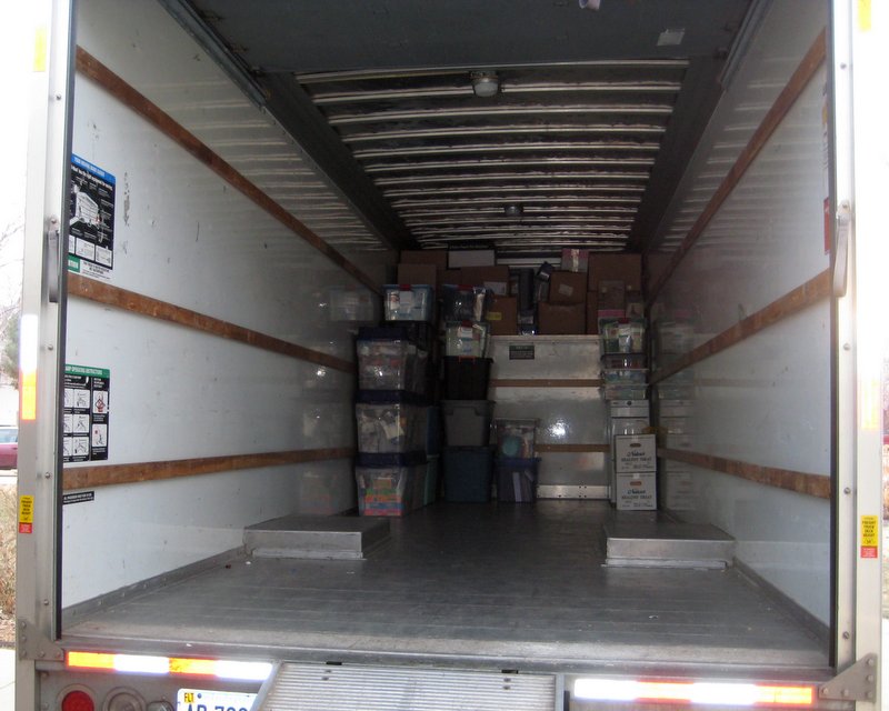 Friends Matt Marshall and Eric Westover helping load the truck.