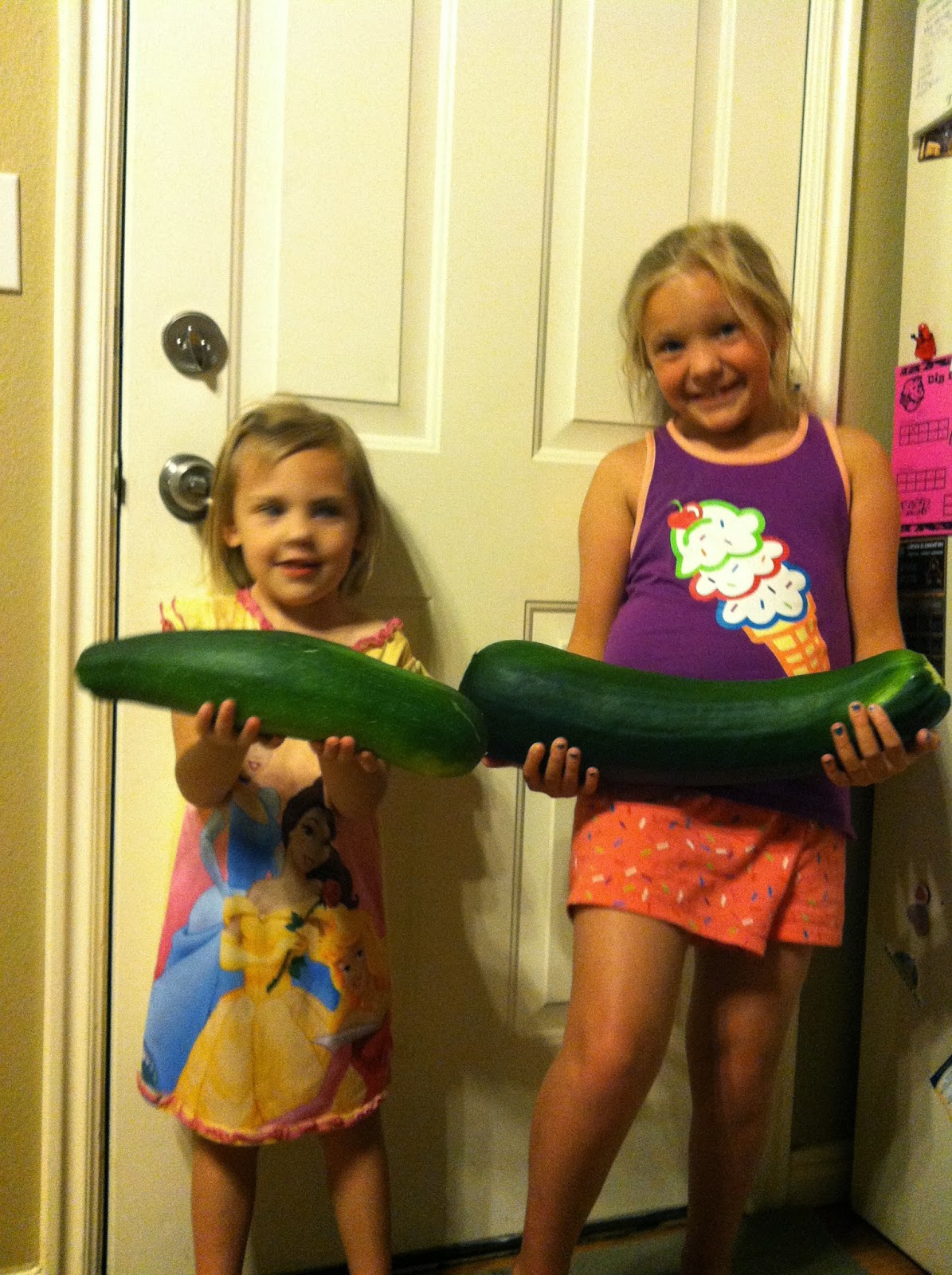 We planted Zucchini and kept getting HUGE ones! Mara's was almost too heavy for her to hold!