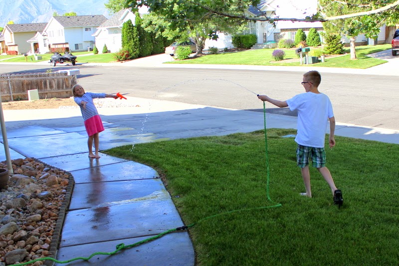 The first week of June, Pat went with the Young Men in the ward on a train trip to Nauvoo, so it was just me and the kids for a week. We started off the week by taking a walk then playing at the school playground.