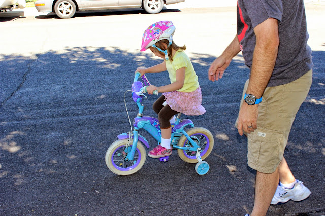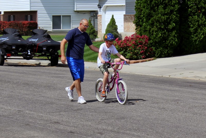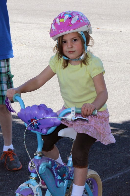 Xander doesn't know how to ride a bike, so we were trying to teach him on Mara's bike.