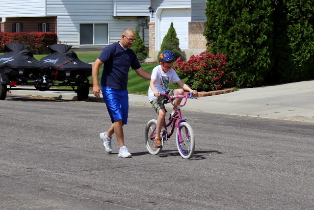 Well, he's too tall for it. So if we want him to learn we need to get him a bigger bike.