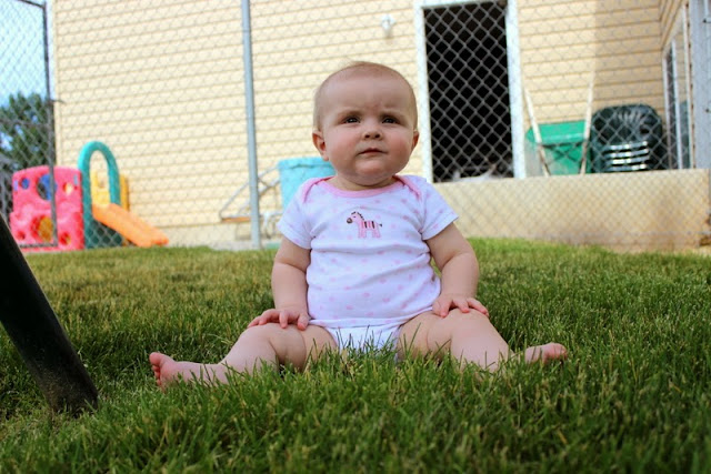 Thankfully, Melody isn't mobile yet, so I can just plop her in the grass and she'll stay.