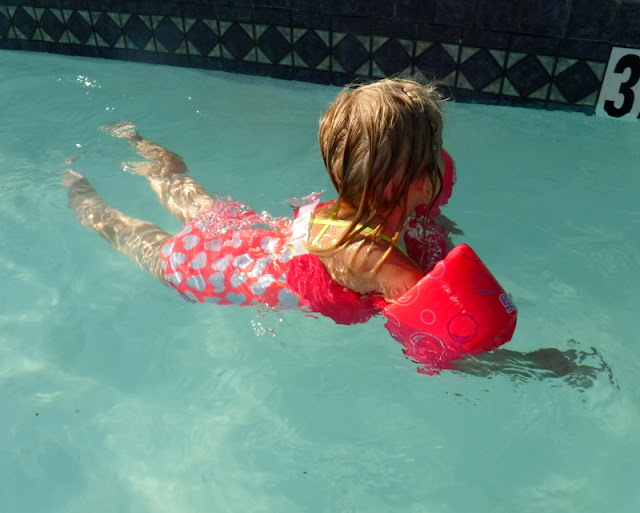 Melody was making friends with some of the little kids at the pool.