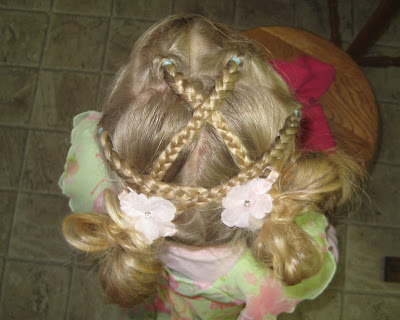 I have 2 friends in my ward that always do the cutest hair styles on their girls. I usually just stare at the girls and think "I won't ever be able to do that".  But I've made a goal to try new and fun things with Mara's hair (just for church, since we now go at 1:00).