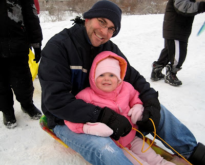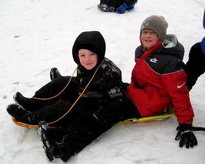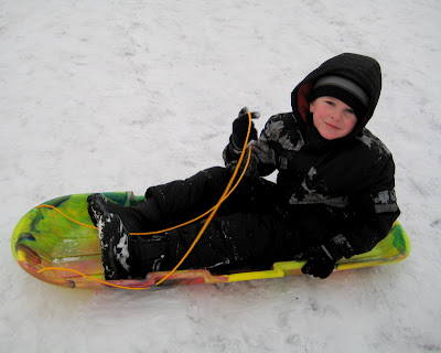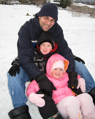 In order to get to the car Pat took the kids down on a sled and I was stuck at the top of the hill! Morri was there to help me get down, but my boots were not meant for snow, so I fell on my butt a few times. By the time I was half was down the hill I had Pat give me a sled to put me out of my misery.  So I did a little sledding too, but not on purpose :)  The kids loved it and didn't complain about the cold until we got to the car and were taking their gloves and coats off, which was pretty good considering that we were out there for about an hour.