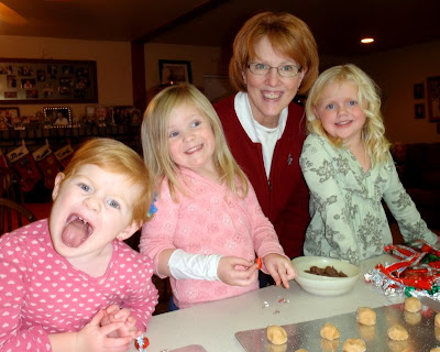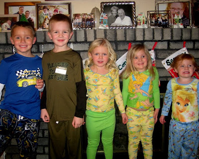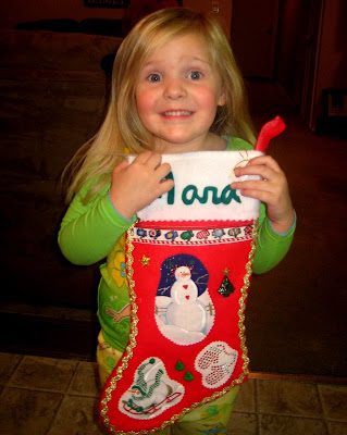 Christmas Eve was spent at home with my family.  It has been very convenient for us to live at my mom's, since this house is the hub for family gatherings.  We had a really yummy dinner (and the kids ate it too!), watched a little bit of family videos from when we were kids (really, from before I was born), made cookies for Santa, got new jammies from Mana, and hung stockings.  All in all a good time was had.