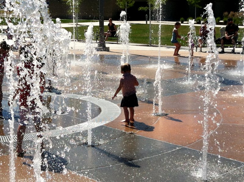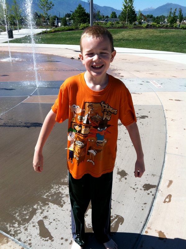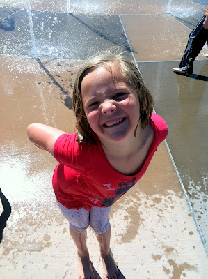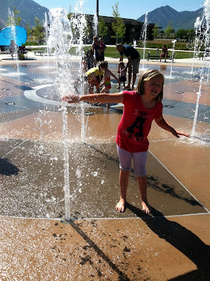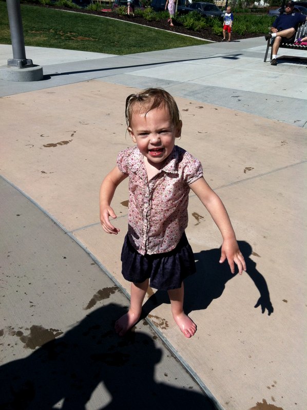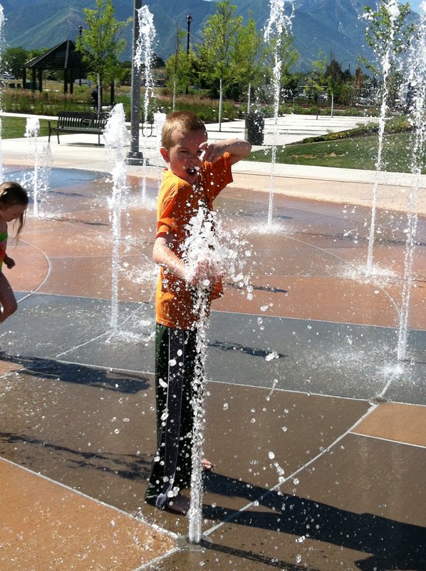 We went exploring, like we do in the summer, and went to North Park, but we forgot that there was a splash pad there. The kids didn't care that they didn't have their swimsuits. They jumped in anyway!