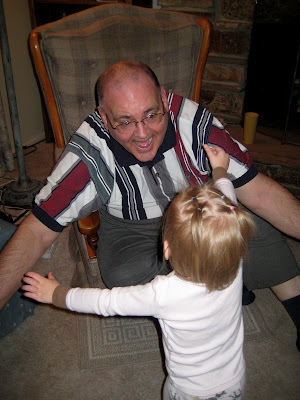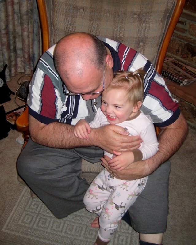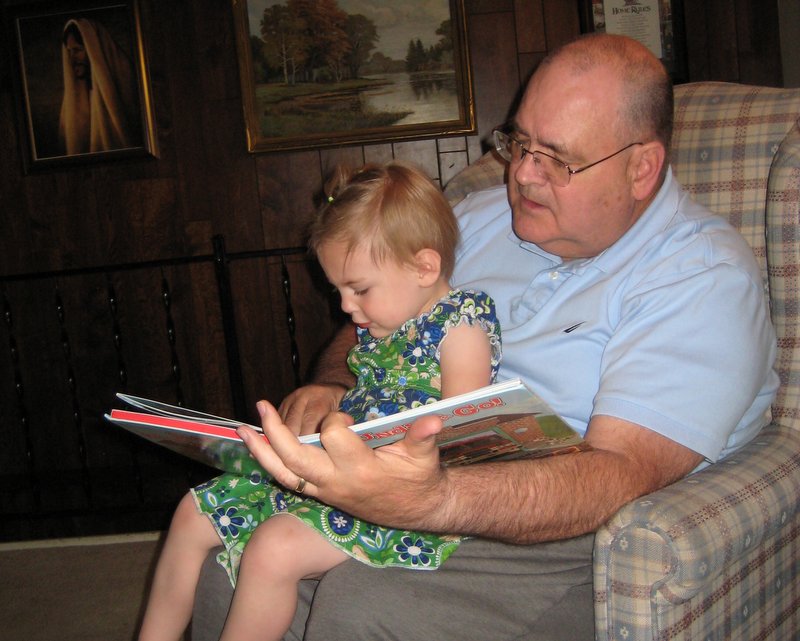 Grandpa reading Jaina a book.