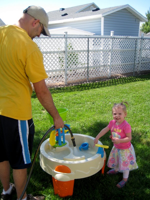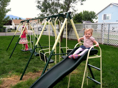 We got a great deal on a new swing set for the backyard! The one that was left was old, wood and horrible. We got a cheap one in hopes that it will fall apart when the kids out grow it :)