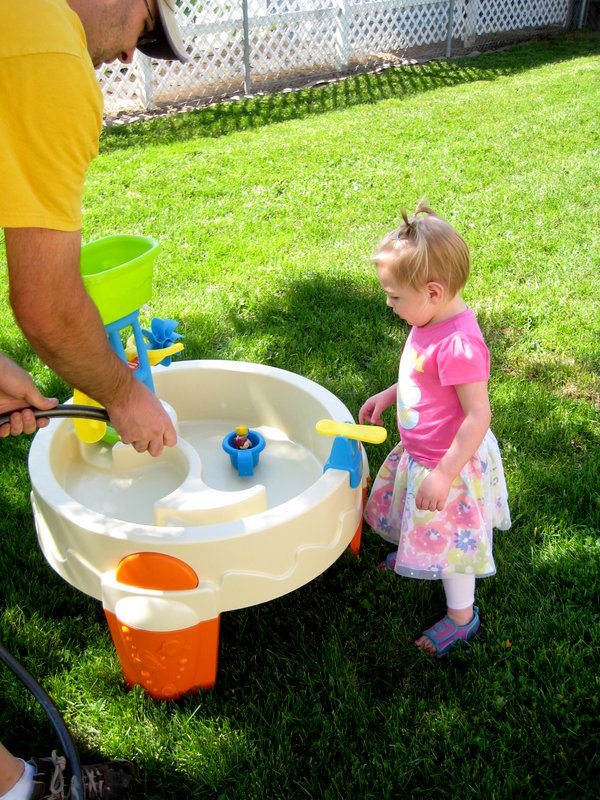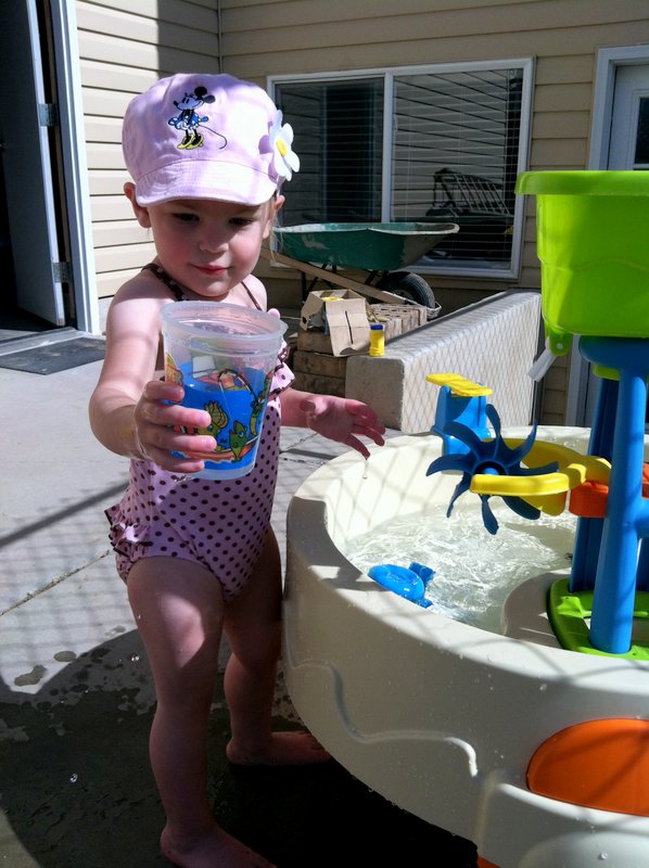 So excited to play outside in a swimsuit!